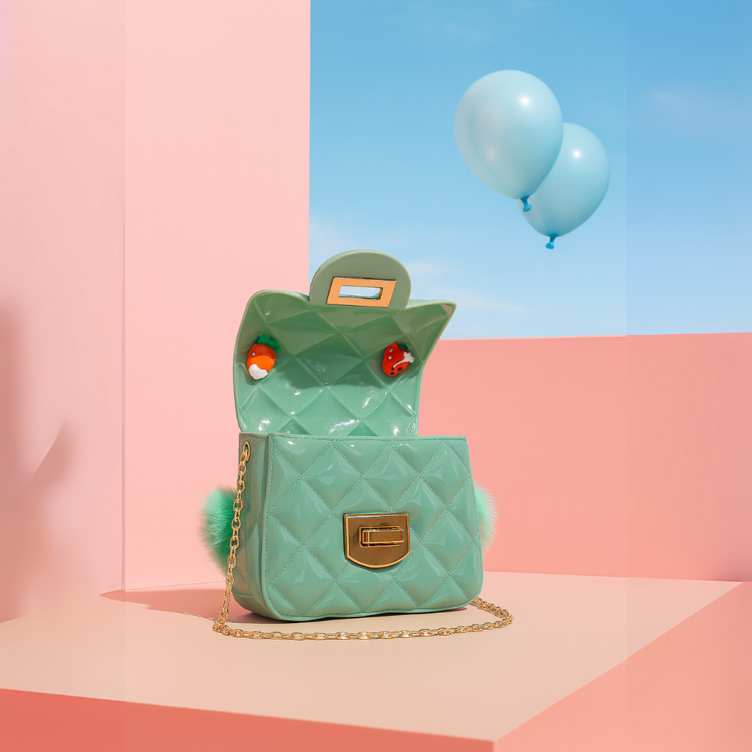 Golden Chain Detailing – Removable metallic chain strap for versatile styling options.