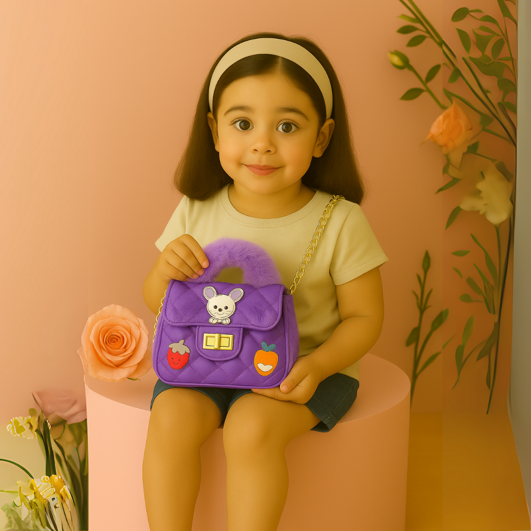 Noire Luxe Quilted Fur Handle Handbag for Girls